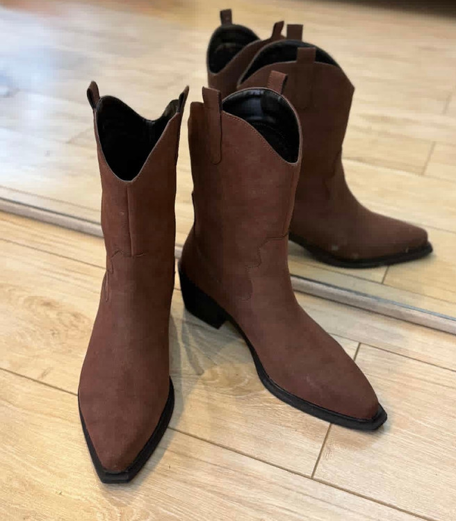 نیم بوت کابوی مدل صحرا با جنس جیر مصنوعی وارداتی دارای زیره پیو لژدار ۴س سبک و راحت میباشد.