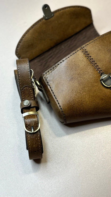 کیف دوشی کمری چرم طبیعی دستدوز مدل هانا دندی کالکشن